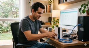 Essa dúvida surge principalmente quando alguém está montando um escritório em casa, instalando um roteador novo ou tentando resolver problemas como internet lenta, instabilidade em jogos online ou travamentos em streaming.